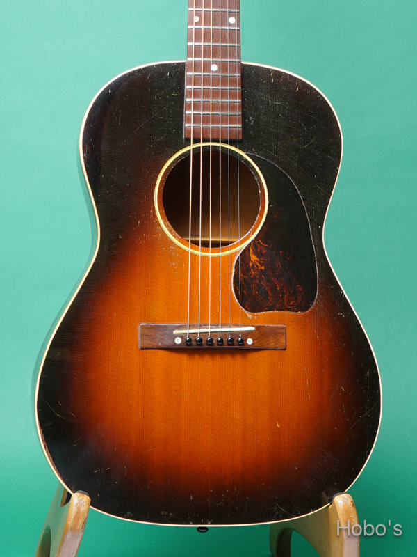 1942-3年製 GIBSON LG-2 が入荷致しました。1942年に発表されたLGシリーズ。1stモデルとしてLG-2を発売後、46、47年にLG-3、LG-1をはじめとしたモデルが次々に発表され、コスト・パフォーマンスも手伝って大変人気を博したギターとして知られております。1960年代のフォークブームではアマチュアの人気も高く、現在でもプロ/アマ男女問わず多くのミュージシャンの支持を得ている人気のシリーズです。