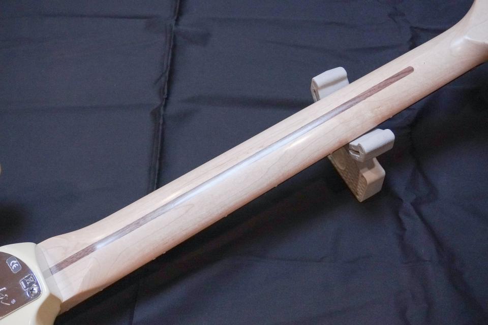快適なソフト" C"シェイプのネック にコンター加工のヒール、LSRローラーナット、ステンレス製サドル付きの2点式シンクロナイズド・トレモロ・ブリッジを搭載。