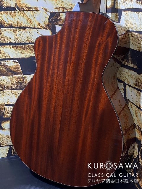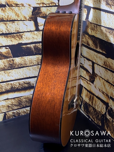 512ceはフィンガーギタリストに人気の高いウエスタン・レッドシダートップとマホガニーの組み合わせ。マホガニーは中音域が突出したドライでウッディなサウンドが特徴ですがトップにスプルースよりも密度の少ないシダーを使ったことで、より温かみのあるサウンドになっています。