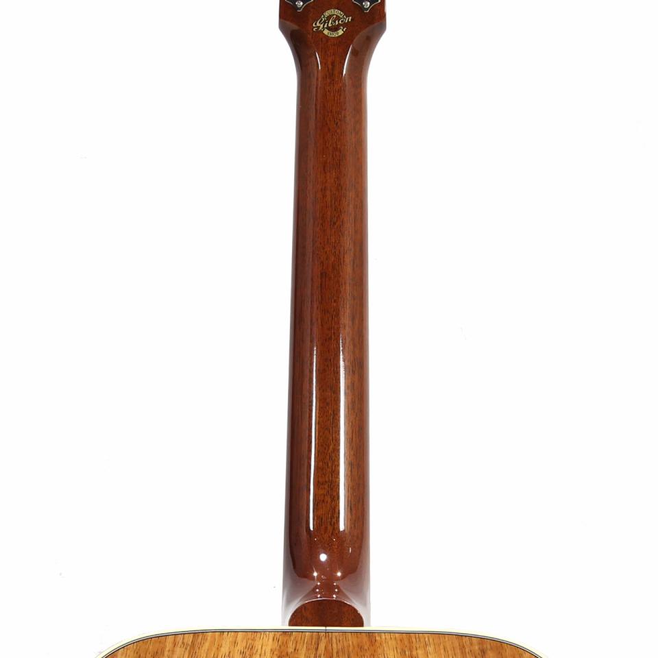 サウンドはメイプルらしい迫力ある音色で、フラットピックでの音飛びもしっかりしており迫力は有ります。マホガニーの明るく軽快なサウンドも良いですが、メイプル材サイド&バックの迫力のある胴鳴りはギブソンにしか出し得ない極上のトーン。J-200では大きすぎて身体に合わないという方は少なくないと思いますので、抱えやすく取り回しの良いJ-200 Juniorは今でも中古市場でも人気のある機種です。J-200よりもタイトに、J-45よりも大らかに鳴ってくれますので、非常に扱い易いと思います。