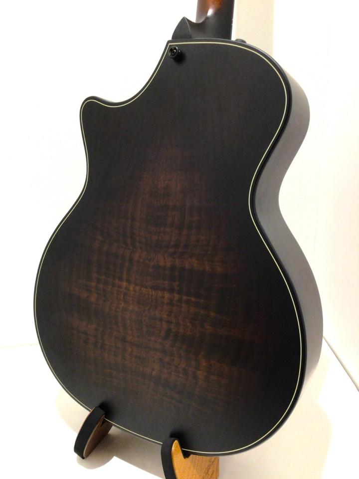 塗装にはサイレントサテンと呼ばれるテイラー独自の塗装を採用しており、レコーディング時などの衣服とギターがすれるノイズを軽減する効果をもっており、現場で活躍するプレイヤーにはとても即戦力として使用できる一本です。