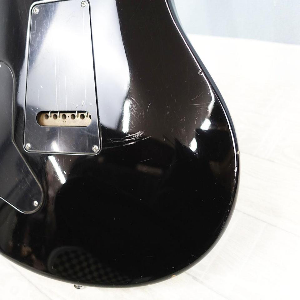 ダメージは多めで弾き傷や当て傷、塗装のチップなどが散見され、カッタウェイ付近に若干塗装の白濁も見られます。