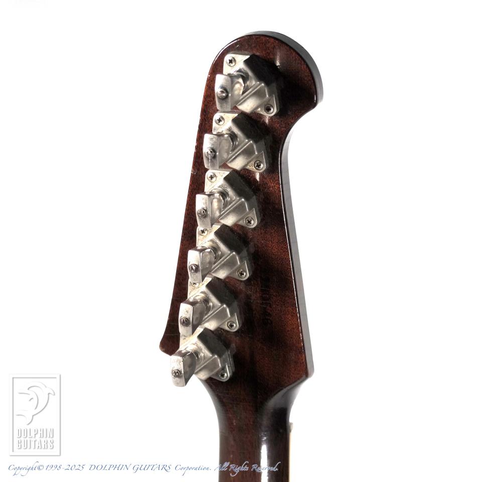 スルーネックに片連バンジョーペグ、ファイヤーバードロゴピックガード、指板バインディング、ディッシュ・インレイ、そしてロングヴァイブローラの搭載と、見どころ満載ですがその全てがバランスよくデザインされており、カーデザイナーが手がけたことも納得の、まるでスポーツカーのようなエッセンスも感じる佇まいです。