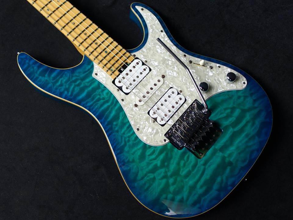 ナチュラルバインディングをあしらったボディはアルダーバックに美しい木目のキルトメイプルトップを採用。その他ウッドマテリアルはハードメイプルネックにメイプル指板を採用しております。
