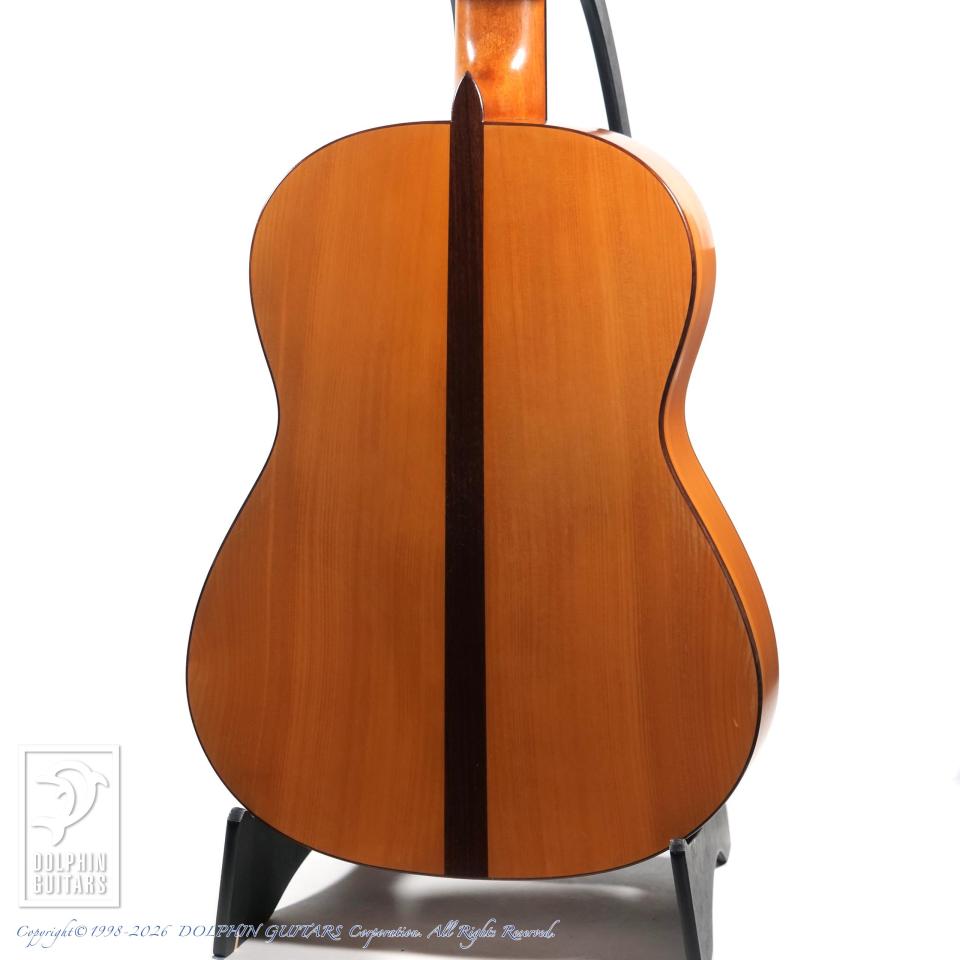 フラメンコギターとしては一般的に想像できるようなブライトさを前面に押し出すタイプではなく、ややマイルドで温かみのある音色が特徴です。硬質になりすぎない柔らかな立ち上がりと、音の芯をしっかりと保った響きが共存しており、どこかクラシックギターを思わせる気品と歌心を感じさせます。フラメンコ特有のレスポンスを備えつつ、旋律の表現力にも優れた一本です。