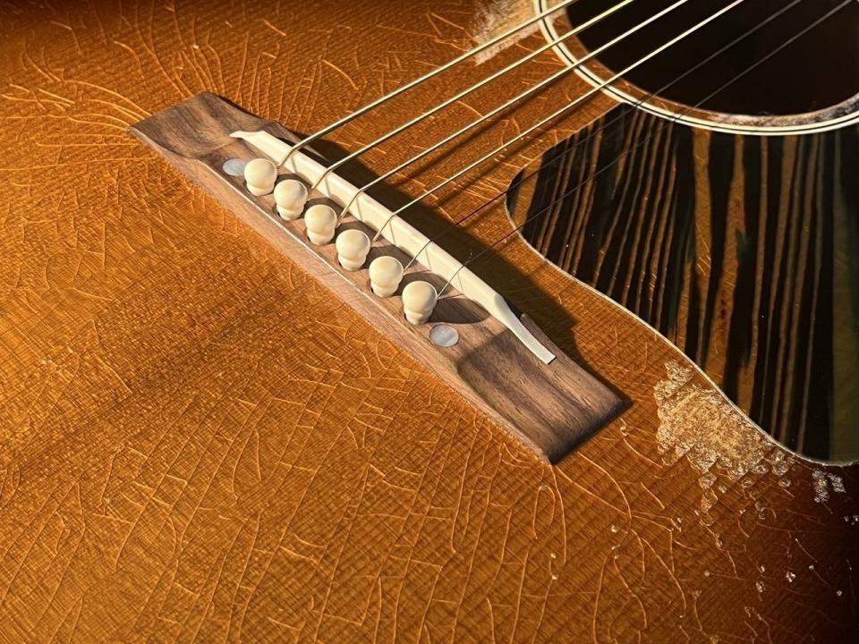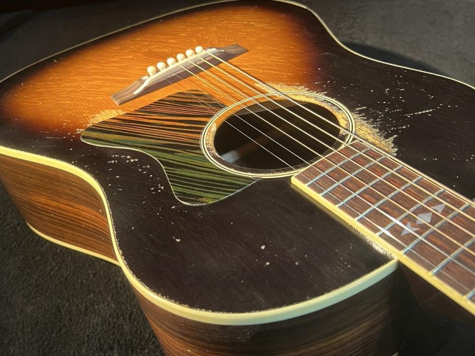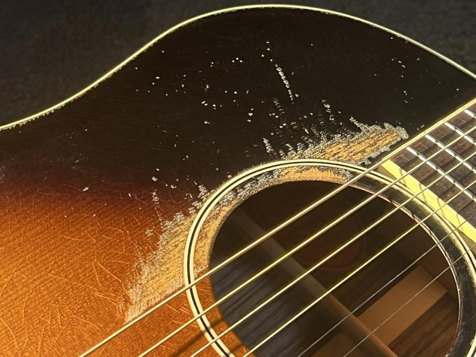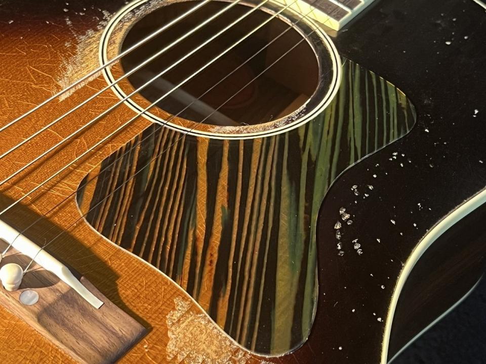 話題のGibsonアコースティック、Murphy Lab Series。Light Agedシリーズとしてウェザーチェックや軽いピッキングによる塗装の剥がれ等を再現したモデルが先行してリリースされていましたが、Heavy Agedとして1936 Advanced Jumboがリリースされました。激しく弾き込まれて削れたサウンドホール周り、ウェザーチェック、チューナーのくすみ等のエイジング加工となります。
