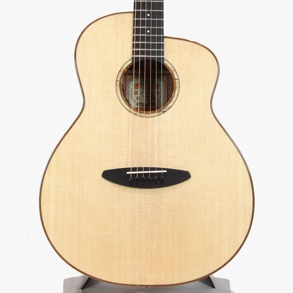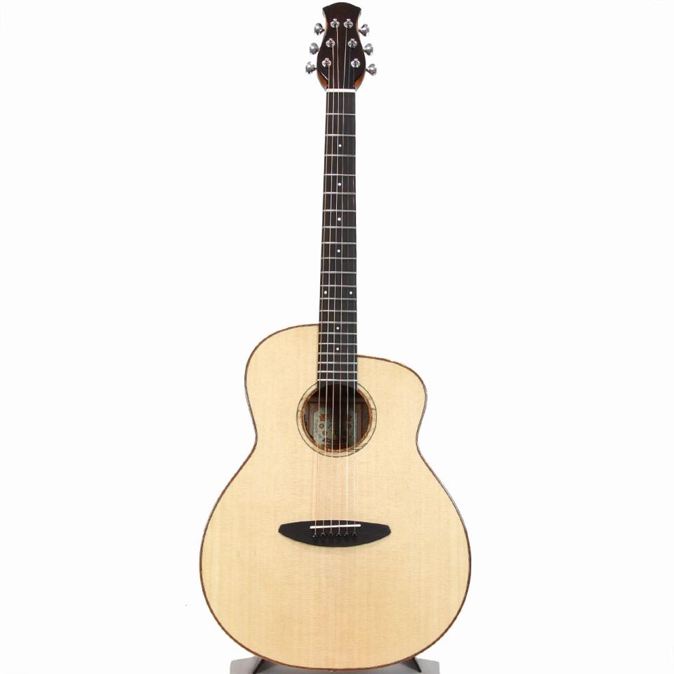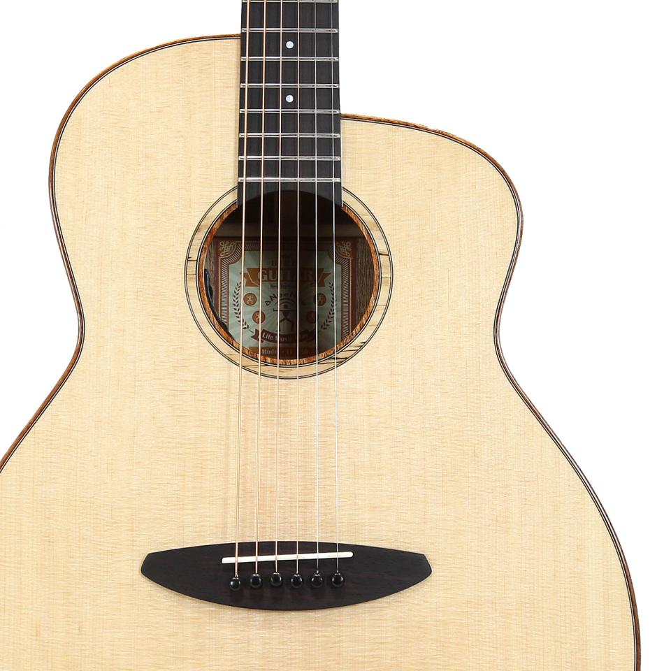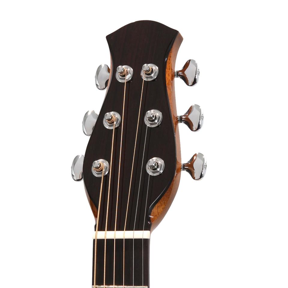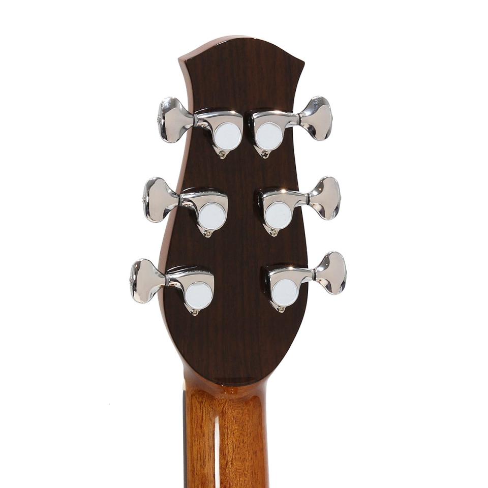 スペックはオーソドックスなスプルース単板トップ、マホガニー材単板サイド&バック、マホガニー材ネック、ローズウッド材指板&駒、牛骨ナット&サドル、44mmナット幅、650mmスケール、グロス・ボディ&グロス・ネック、Air Blueピックアップ搭載となっております。ロゴなしのヘッドは杉田健司氏デザインのハンドカットヘッドストックを採用し、この価格帯とは思えないハイエンドギターのような高級感があります。