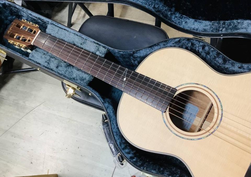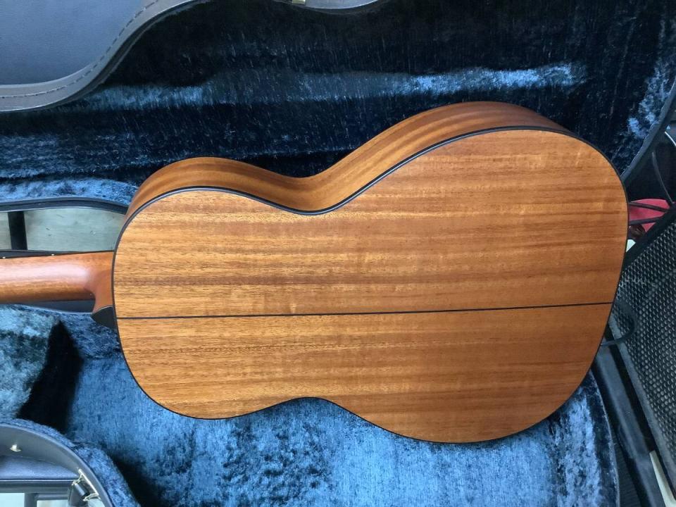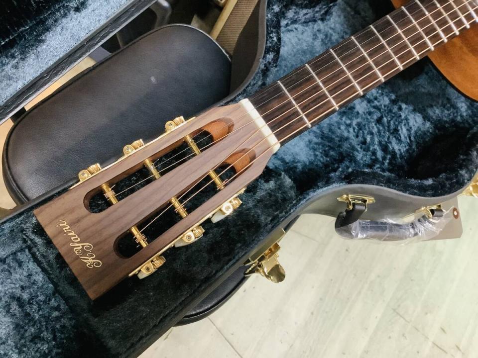 材料構成は、厳選のスプルーストップ、マホガニーサイドバック、マホガニーネック、エボニー指板で、オール単板仕様。