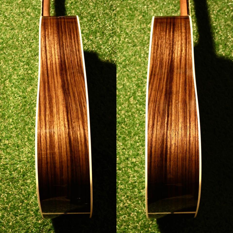 音の特徴としては、まず第一に“迫力ある低域”が魅力。次に“豊かなミッド”、そして“クリアな高音”が続きそれらがバランスよく混ざり合いどんな演奏にも鮮やかに応えてくれます。特にフラットピッキングやストロークではそのダイナミクスの圧倒的な表現力に感動すら覚えます。