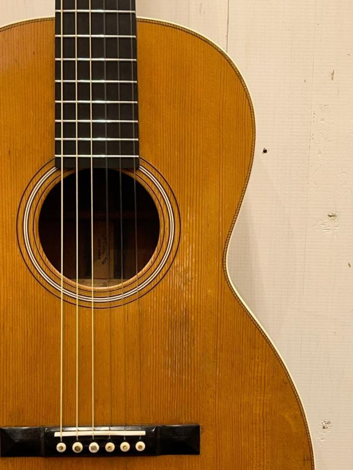 1928年よりスティール弦モデルがスタンダードとなりましたが、こちらのモデルはまだガット弦が主流の時代19世紀のスペックをそのまま残した本物のアンティーク0-28になります。