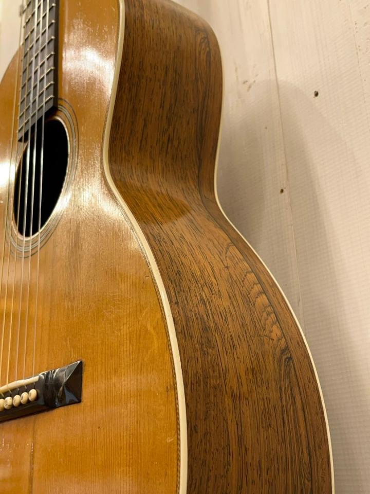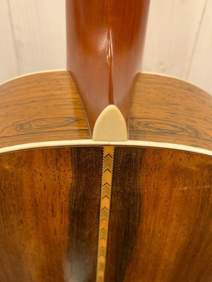 アディロンダックスプルースTop、ハカランダSide&Back、エボニー指板(交換)、エボニーピラミッドブリッジ、スロテッドヘッド、