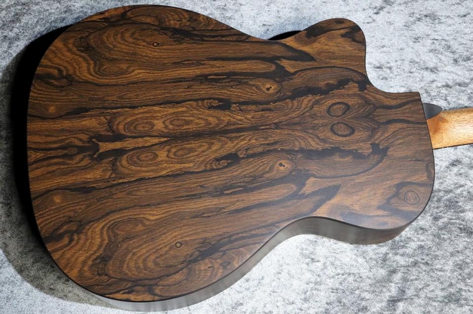 多用途なオーケストラモデルのカッタウェイがラインナップに加わります。快適な000ボディサイズはそのままに、スケール長を645mmに延長することで、6弦すべてにおいて、より豊かな音の広がり、サスティン、そしてバランスの取れたトーンを実現しています。ソリッドサペリトップは温かみとパンチの効いた中音域を提供し、ジリコテ模様の高圧ラミネート(HPL)バック&サイドは耐久性と目を引くスタイルを高めています。