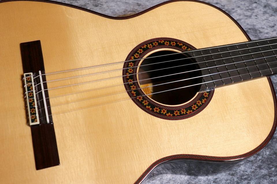 ブリッジとサウンドホールに施された装飾はホセ・ラミレス1世からか数えて5代目となるアマリア・ラミレス自ら考案したもので、女性ならではの花をあしらったエレガントなデザインとなっております。又、構造面ではネックには本のカーボン・ファイバー・ストリップが埋め込まれおり、強度と安定性をましております。
