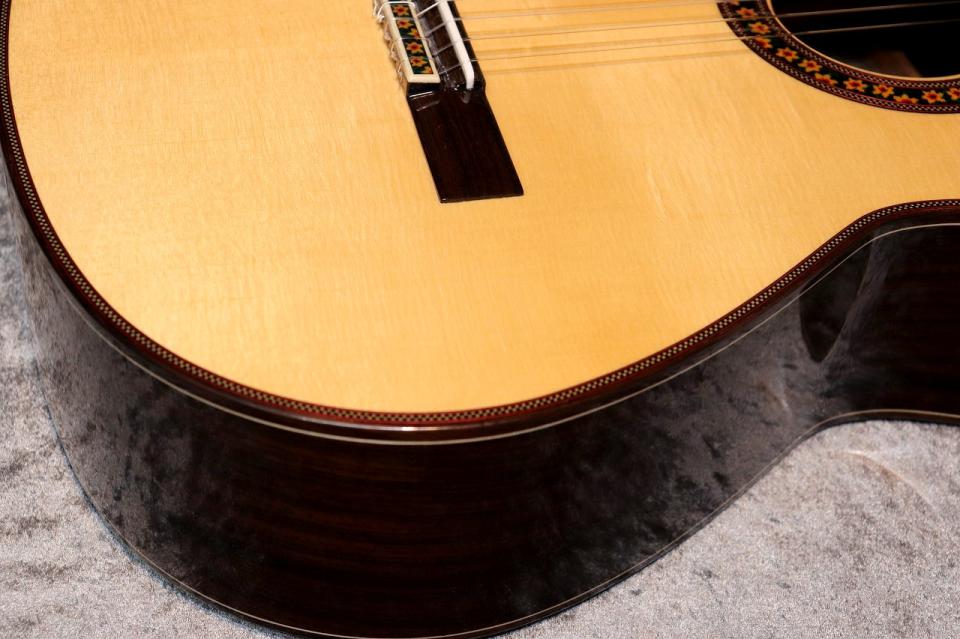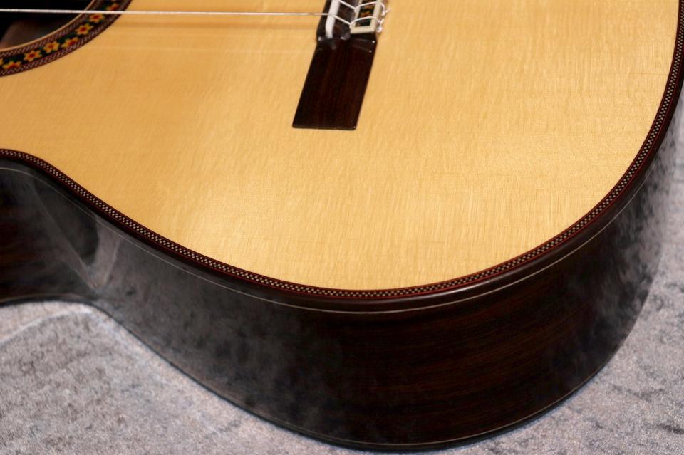ラミレス3世は革新的な試みを多く取り入れクラシックギターそのものを次の次元へと引き上げました。史上初めて表板にシダーを採用したことや650mmスケール・ユリア樹脂を使った塗装など現在では一般的な仕様として認知されているものを多く生み出しました。