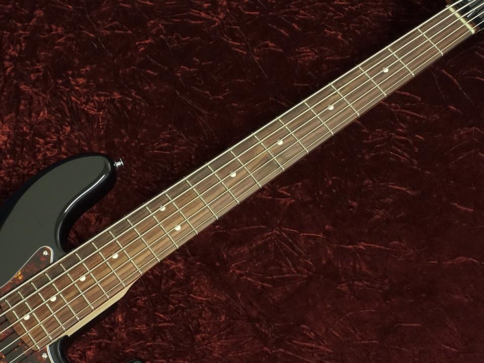 アルダーボディにメイプルネック、ローズウッド指板という安心感のあるマテリアル構成は、太さと抜けのバランスが秀逸。さらに本モデルから標準仕様となった34.5インチスケールにより、通常の34インチにはない適度なテンション感が得られ、特に5弦のローBは輪郭が明瞭でレスポンスも良好です。