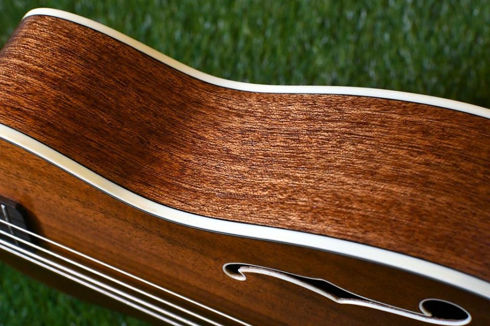 こちらのモデルはリーズナブルな価格ながら、マホガニーボディにFホールと、