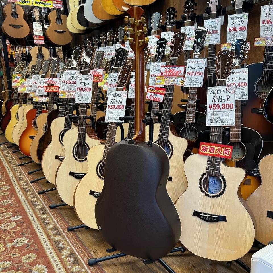 1階から2階までアコースティックギターを沢山展示しております。