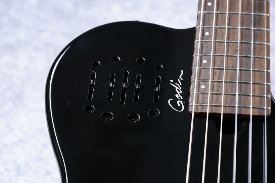 ピックアップ&プリアンプ: Custom Godin Dual Source System, 2 body sensors, Undersaddle bridge