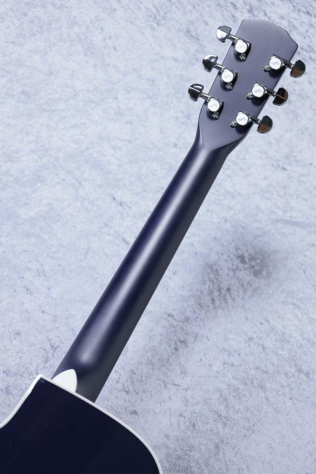 ブリッジピンを使わない方式を採用することにより、弦のテンション感がやや緩やかになり左手の押弦が容易になるだけでなく、弦交換も非常に楽になるメリットがあります。