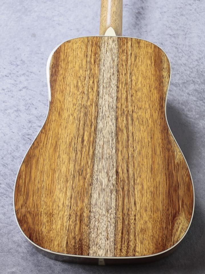 サイドとバックにハワイアン・コア材を使用し、小ぶりなドレッドノート・スタイルのボディ形状と