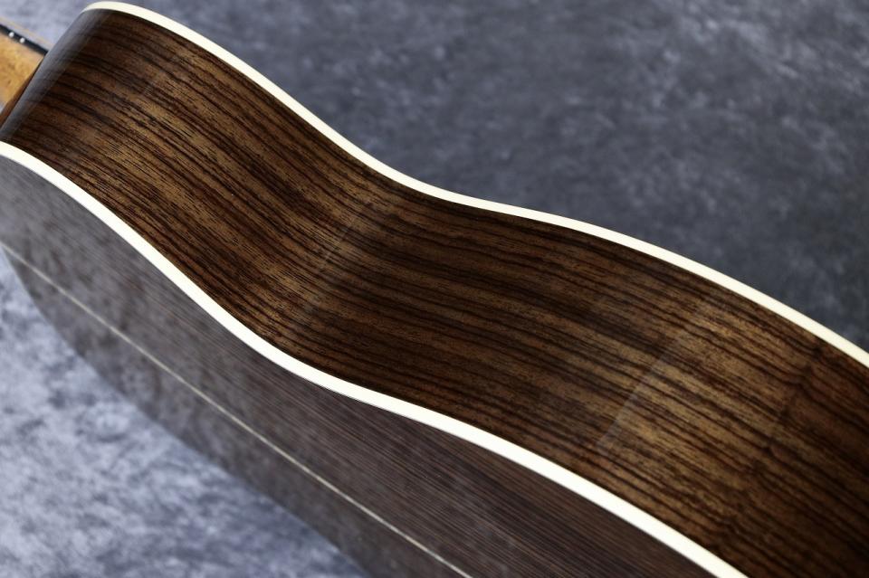 深いくびれと薄めのボディ厚で伝統的なドレッドノートと比較しても抱え心地の良さが際立ちます。
