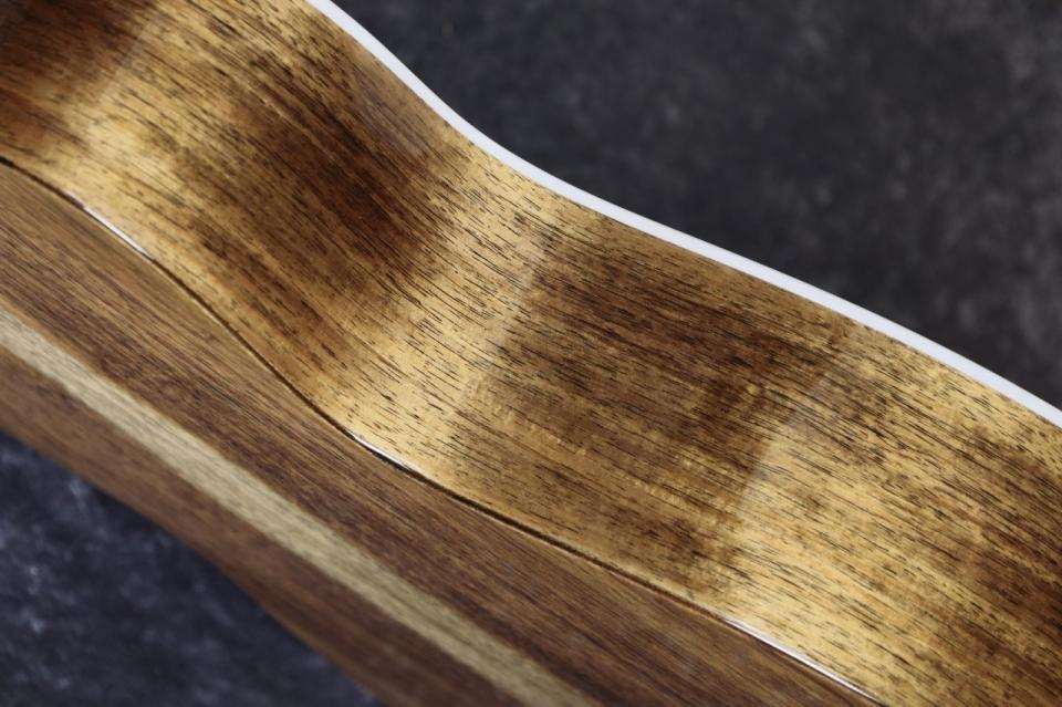 ボディはトップにシトカ・スプルース、サイド&バックには杢目の美しいコアを使用。