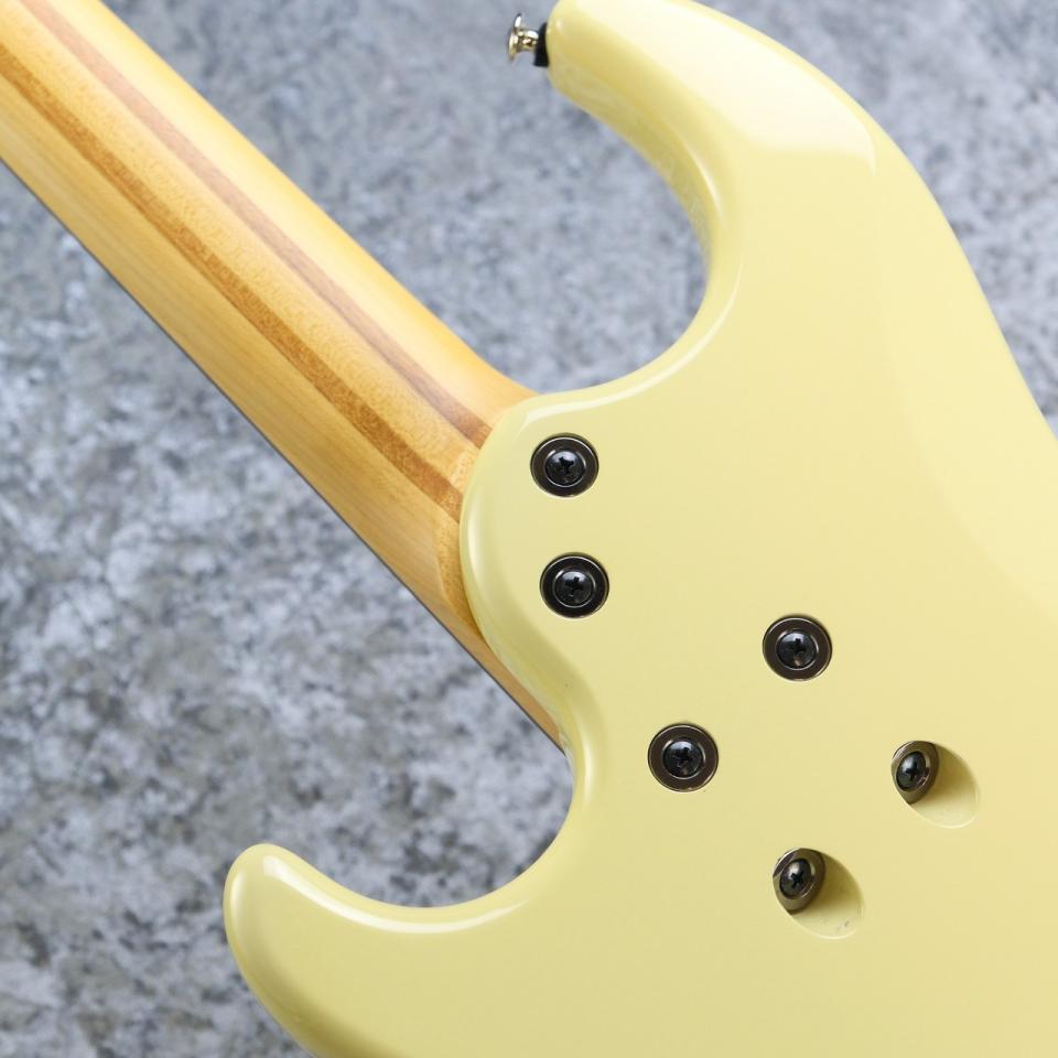 ボディ裏面から垂直にネックを固定する4本のネジに加え、ボディ裏から45度の角度でネックエンドを固定し、ボディとネックを強固に密着させる事でより強烈な鳴りを生み出すマイター・ボルティング。