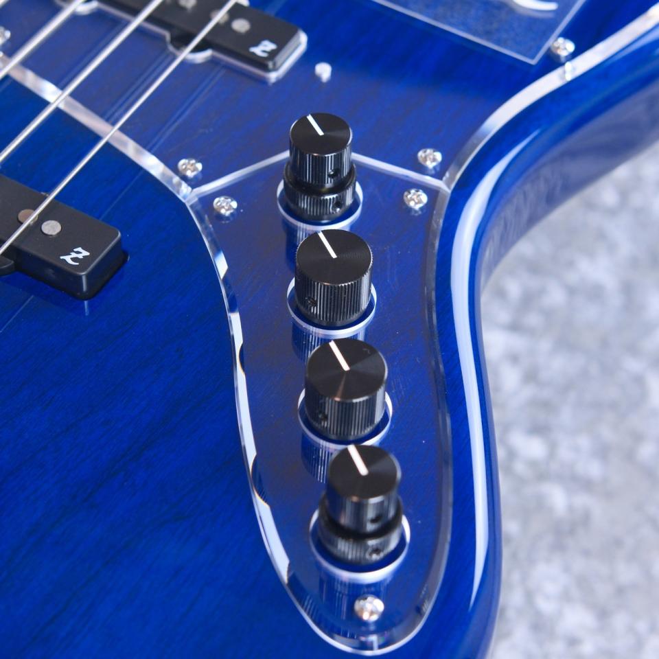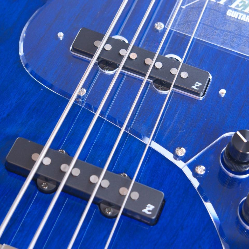 本機はプリアンプにBartolini XTCTとMCT-375を搭載し、シースルーブルーを採用したカスタムモデル。
