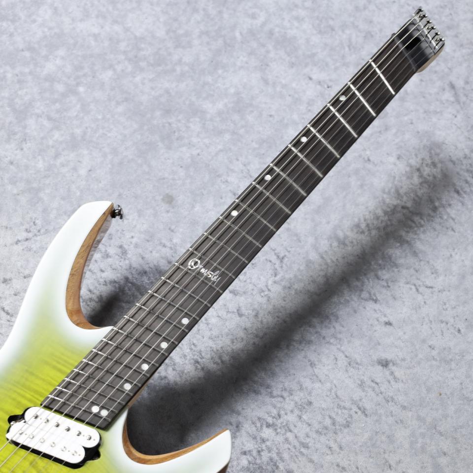 ネックはハードロックメイプルのボルトオンジョイント仕様、スケールはマルチスケールが採用されています。