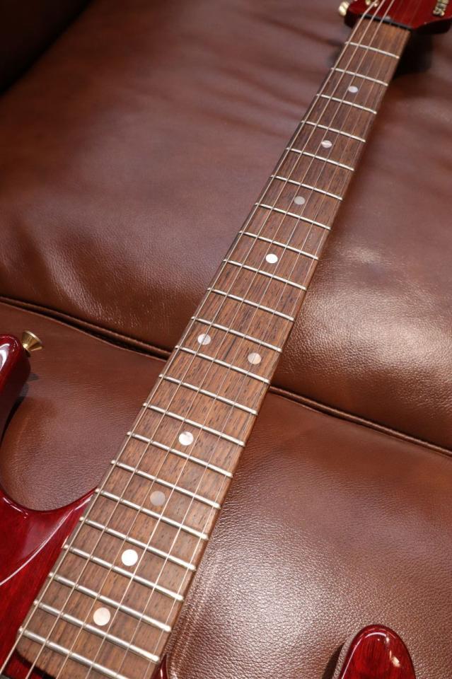 ボディ、およびネック材は良質なマホガニー。指板はローズウッドまたはパーフェロー。このギターに関しては詳細がわからないので指板材の特定には至りませんでした。