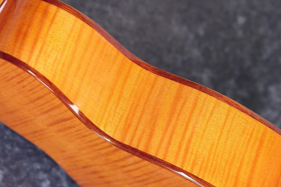 サイド&バックとネックには日照りを彷彿とさせるような鮮やかなオレンジ、トップのナチュラルカラーに