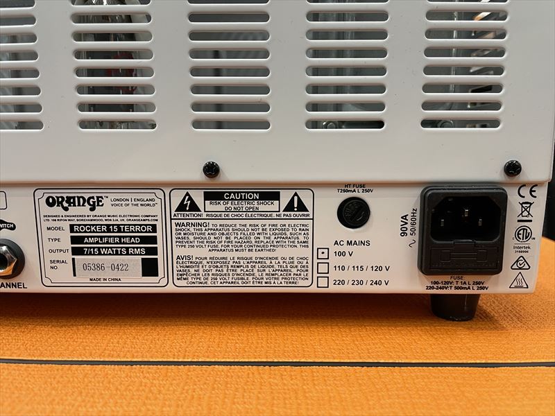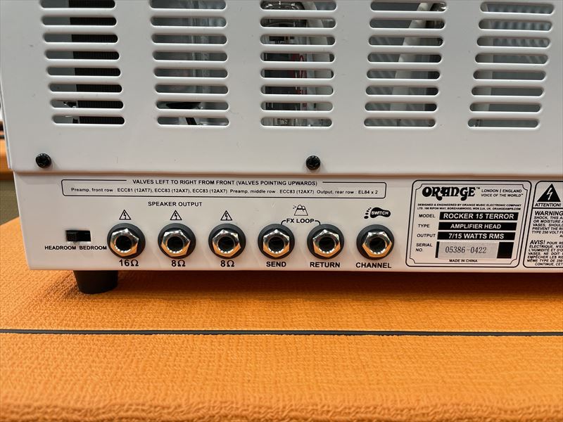 Orangeの15Wアンプヘッドは1Ch仕様のOR15がありますが、このRocker 15 Terrorは2Ch仕様、フットスイッチでChの切替も可能。