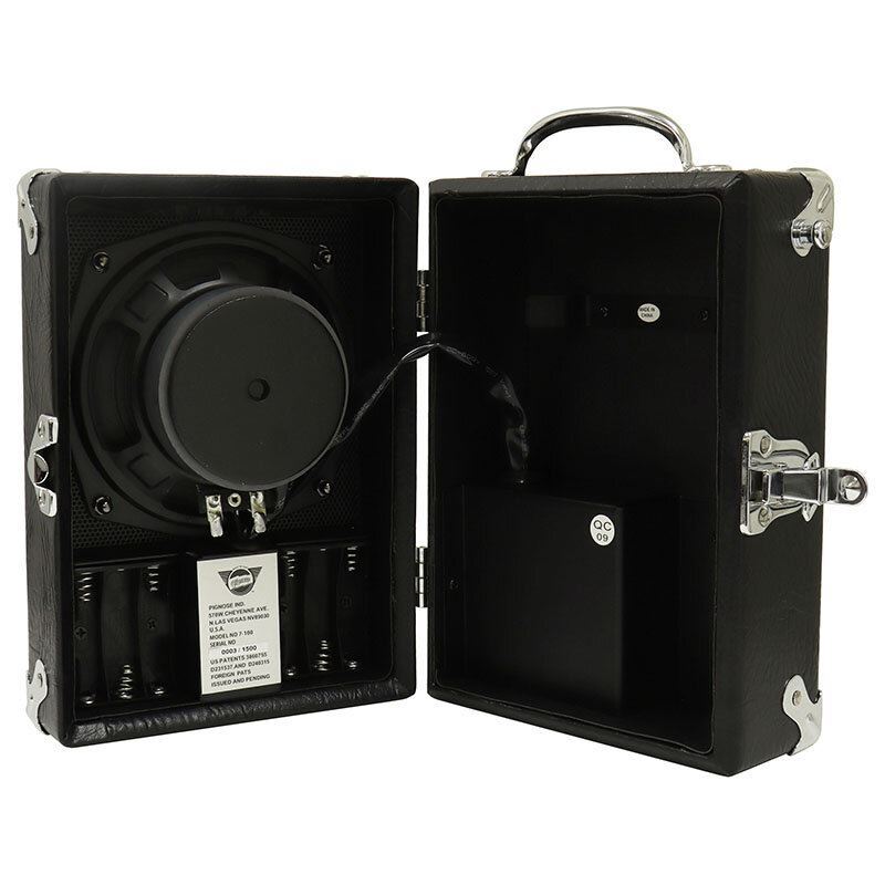 開閉式スピーカーボックスとお馴染みのヴォリュームノブ。