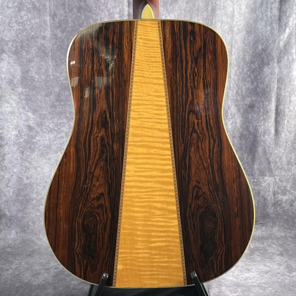 Martin D-45スタイルを踏襲した縦ロゴ仕様の上位モデルで、サイド&バックには希少なハカランダ、指板にはエボニーを使用し、指板には華やかなツリー・オブ・ライフ・インレイが施された、当時のモーリス渾身の一本です。