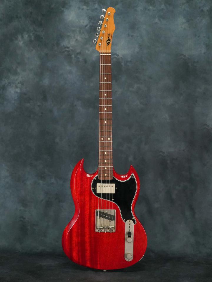 SGとTelecasterをミックスしたような独特のデザインが特徴、フロントにハムバッカーを搭載しCherry Redフィニッシュカラーで仕上げられたRS Guitarworks STEE 60sの2