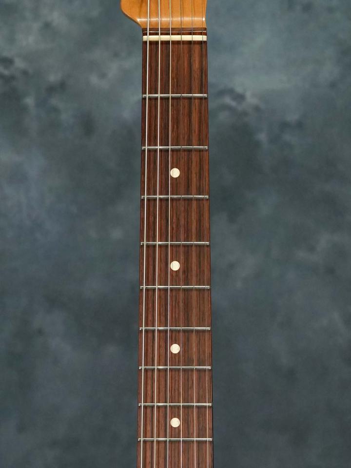 ネックはほぼストレートの丁度良い状態でトラスロッドの効きも良好、フレットは高音弦側のローポジションを中心に減っているものの、特定の箇所の凹みや気になるようなビビり/音詰まりは無く演奏性は良好です。