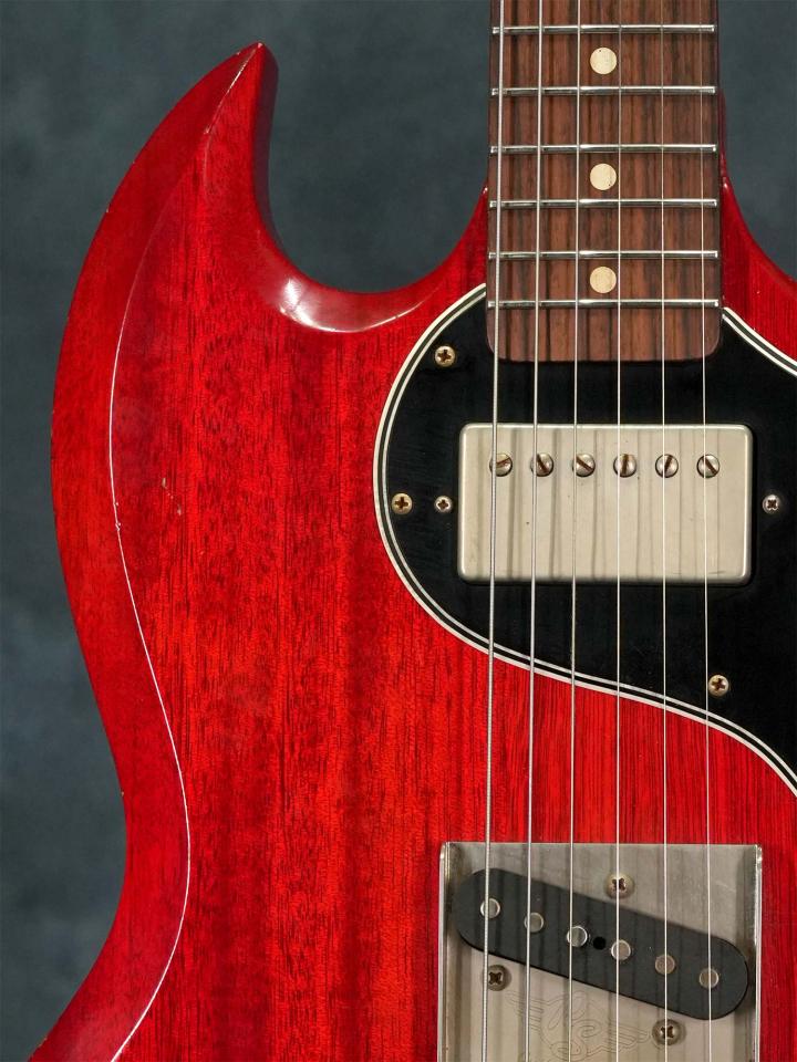 一般的なSG(約35mm)よりも厚い約45mm厚のマホガニーボディ、適度に厚みがあるボルトオン・メイプルネック、ドットポジションマークの入った10インチラディアスのローズウッド指板、ピックアップは共にLindy FralinによってカスタムワウンドされたPYCHEBILLY BLUES(フロント)&TEEVEE Bridge(リア) を搭載。