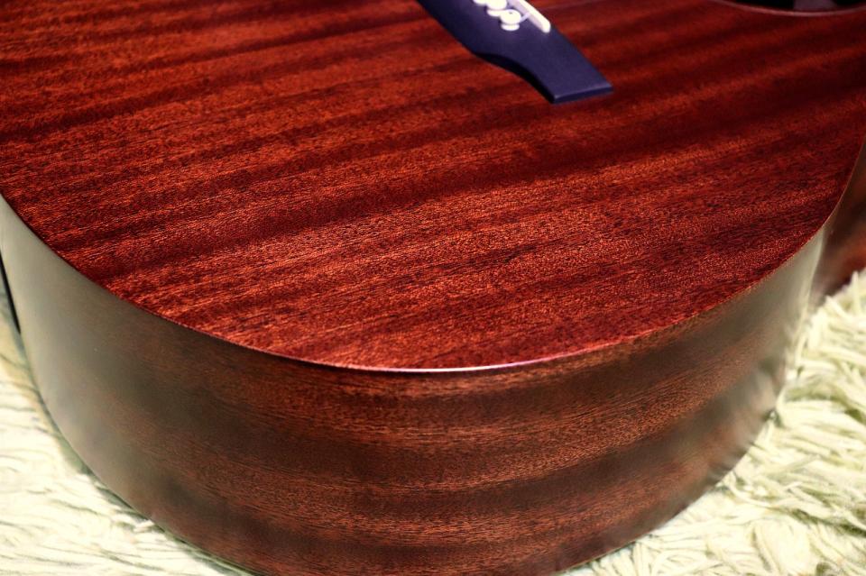 ■ボディトップ・サイドバック:サペリ単板..甘く優しい素朴な音色を持つ、高級素材マホガニーに近い材。