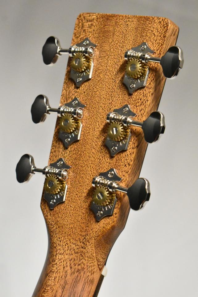 ドレッドノートサイズながらわずかに短い弦長と僅かに細めのナット幅により手が大きくない方でも弾きやすい仕様になっております。