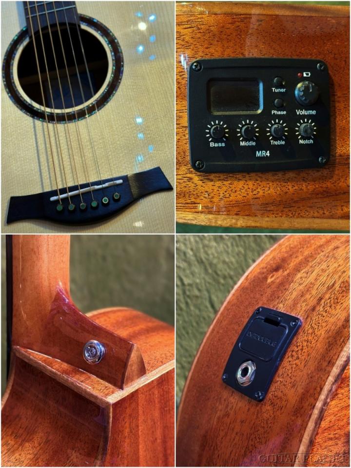 トップはスプルース単板、サイド&バックはマホガニーのベベルド・アームレストを施したカッタウェイボディ。