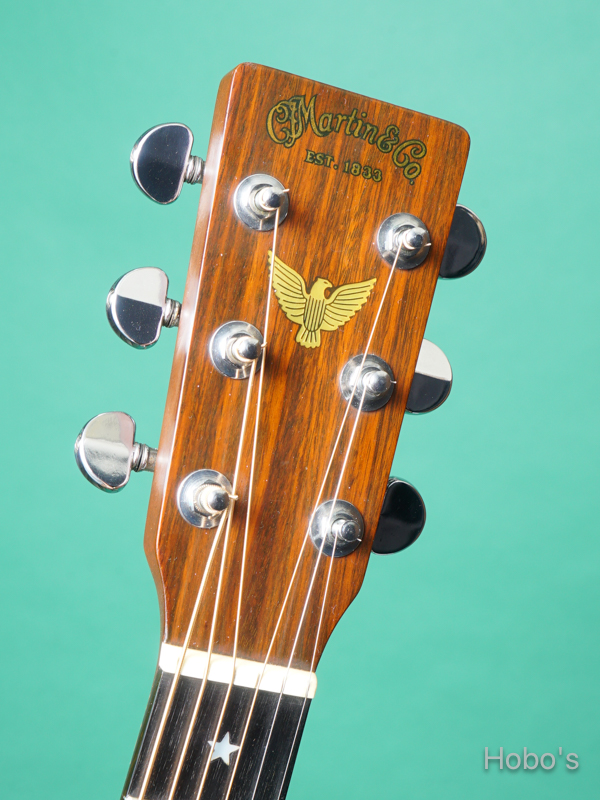 フレット及びサドルの高さにも余裕があり、ネック・コンディションも良好です。表板には経年変化による色やけが見られますが、ウェザーチェックはごく僅かとなっております。ブリッジ左側に打痕があり、その他小さい打痕がいくつかございますが、クラックはございません。オリジナルのグローバー社製糸巻きの銀メッキも綺麗に残っており、正常動作確認済み。ピックガードは交換されておりますが、マーティンクラックはございません。エンドピンジャック加工跡やネックヒールへのストラップピン装着もなく、オリジナル性高くコンディション良好な個体と言えるでしょう。オリジナル・チューナー、ブリッジ、フィンガーボード、フィニッシュ、ハードケース、ケースカーバー、サーティフィケイトペーパーが付属いたします。入荷時に当店工房にて、ネックリセット並びにそれに伴いナットサドル、フレット交換済み。