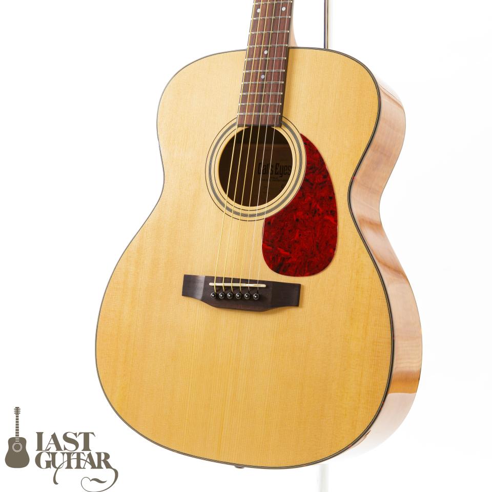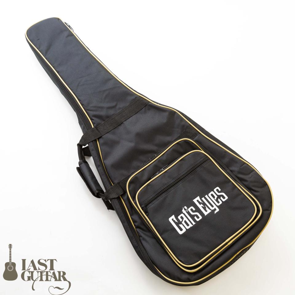 本機は、キャッツアイのトップ単板仕様のミドルグレードモデルです。ボディタイプは、000タイプで、ドレットノートと呼ばれる最も一般的なアコースティックギターに比べてコンパクトなボディと薄めの胴厚、また弦長も短いため、抱えやすく弾きやすいのが特徴です。トップは、スプルース、サイドとバックは、マホガニーとアコースティックギターのオーソドックスな材料で組み上げられております。あたたかく爽快感のあるサウンドフィールです。ヘッドの装飾やボディのグロス仕上げなど高級感もあります。ケースは、ソフトケースが付属いたします。