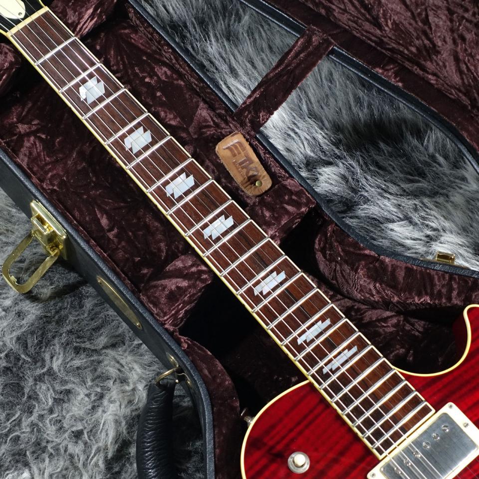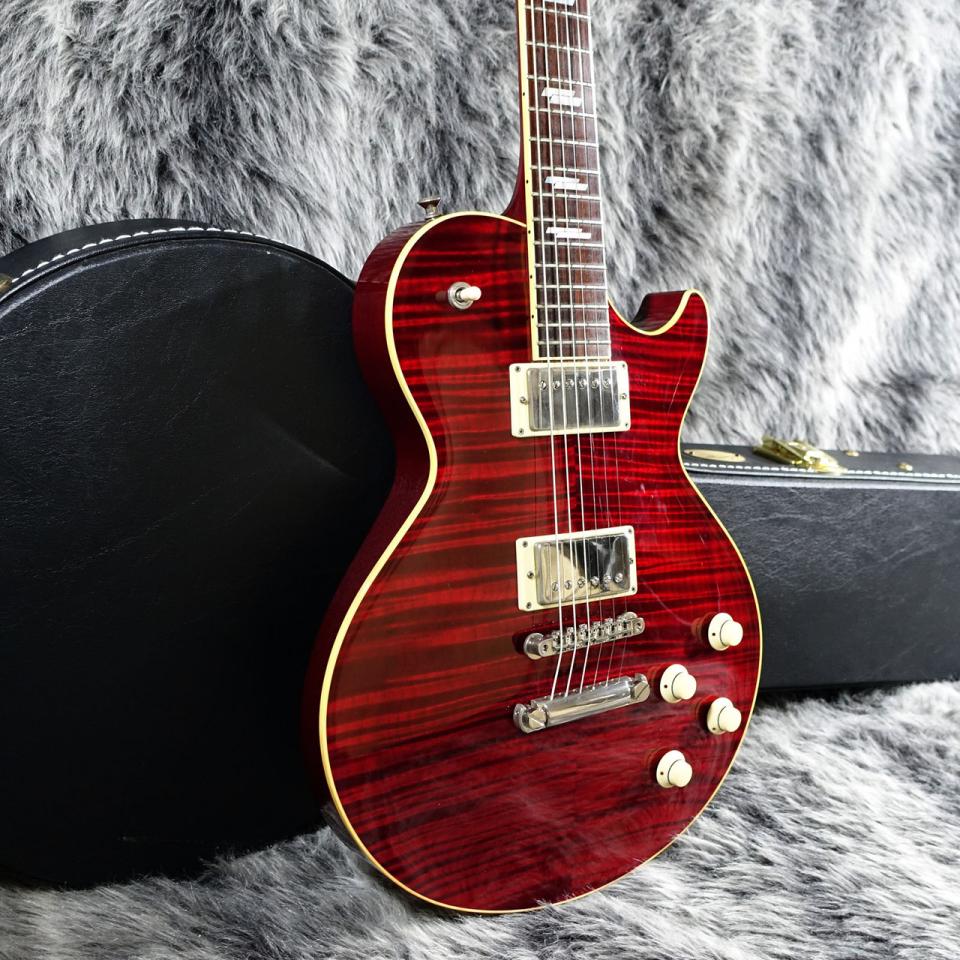 フレイムメイプルとホンジュラス・マホガニー材のボディ、同じくホンジュラス・マホガニーのネックにローズウッド指板。