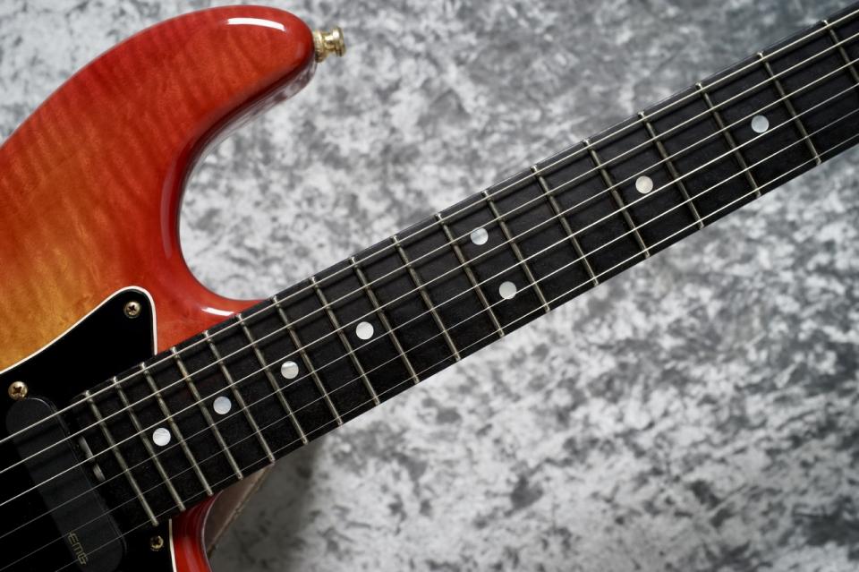 ボディは1ピースの非常に美しいフレイムメイプルが贅沢に使用されております。