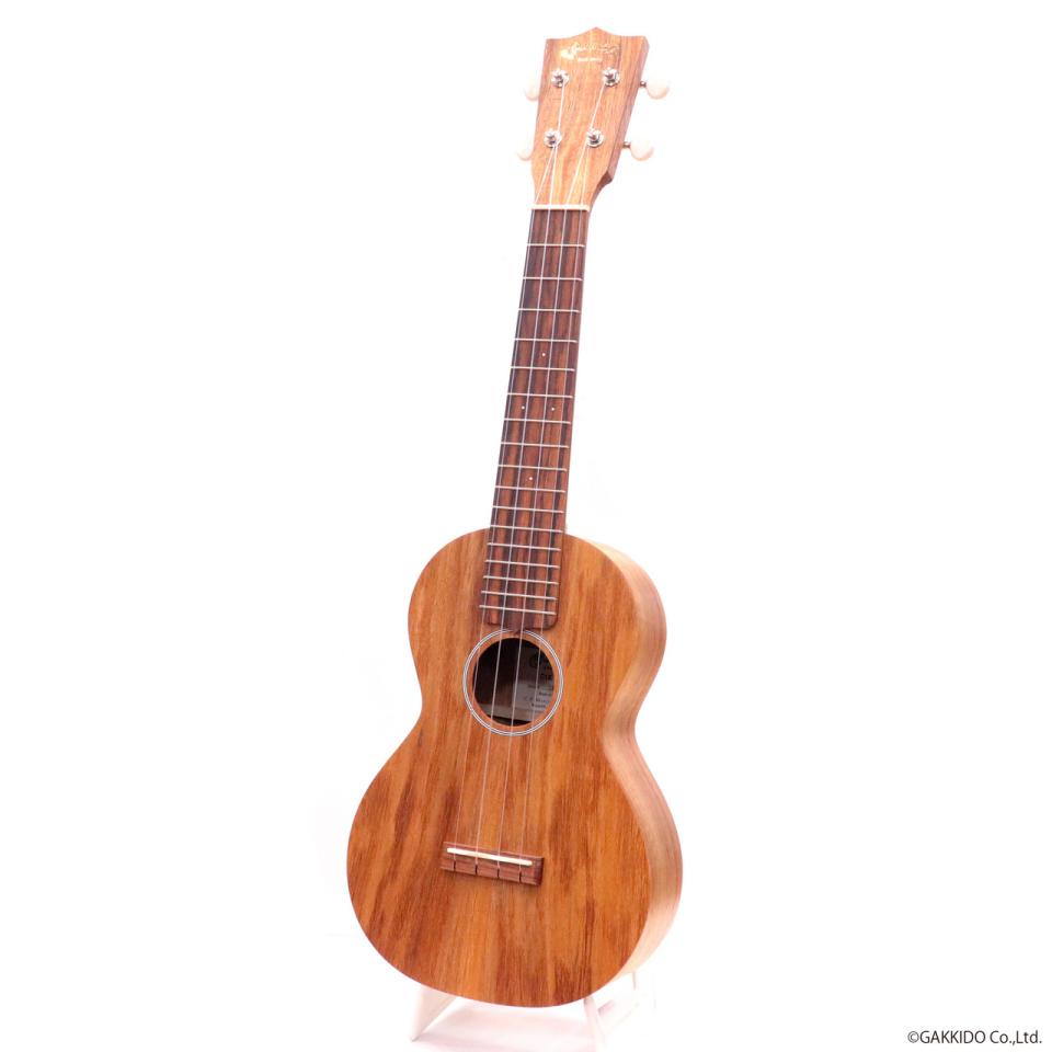 ウクレレのサイズは小さい順に、ソプラノ、コンサート、テナー、バリトンと様々。手の大きさにもよるが、大人が演奏するにはコンサートサイズがちょうどいい。ハワイでは子供はソプラノ、大人はコンサートサイズを使うことが多い。ハワイアン・コアを用いたこのモデルは、ウクレレらしい音色と演奏性の良さが両立した優れた1本。初心者から上級者まで満足できるモデルだ。
