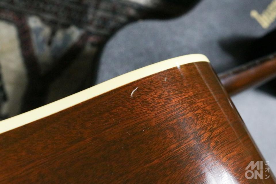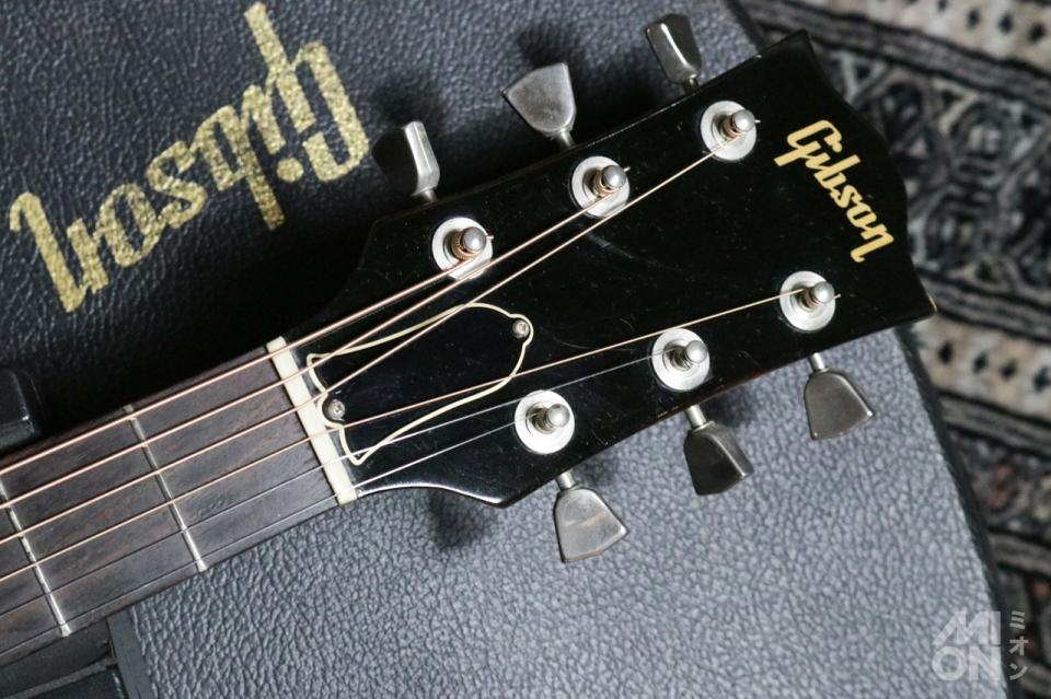 現行品のものとは大きく音色が違うのは当然といえば当然ですが、この70年代後半の「J-45」にしか存在していない仕様や音が確かにあります。これらを解析してカスタムショップが再現したりするわけで、実際に本物を弾いてみると、気持ちいい高音で、ピックでのコードストロークの際にとてもいい音を出してくれる一本でした。