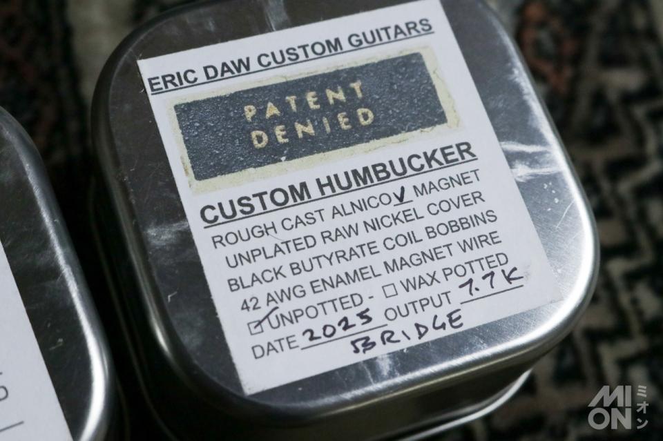 こちらは当店がカスタムオーダーした「Patent Denied Custom Humbucker」。ハムバッカー2基がセットになっています。2025年に完成した品です。