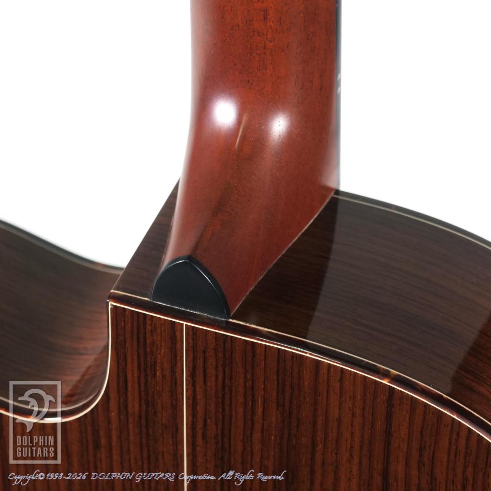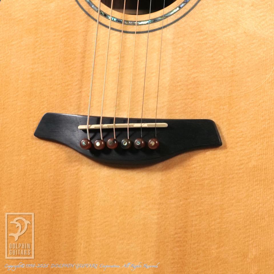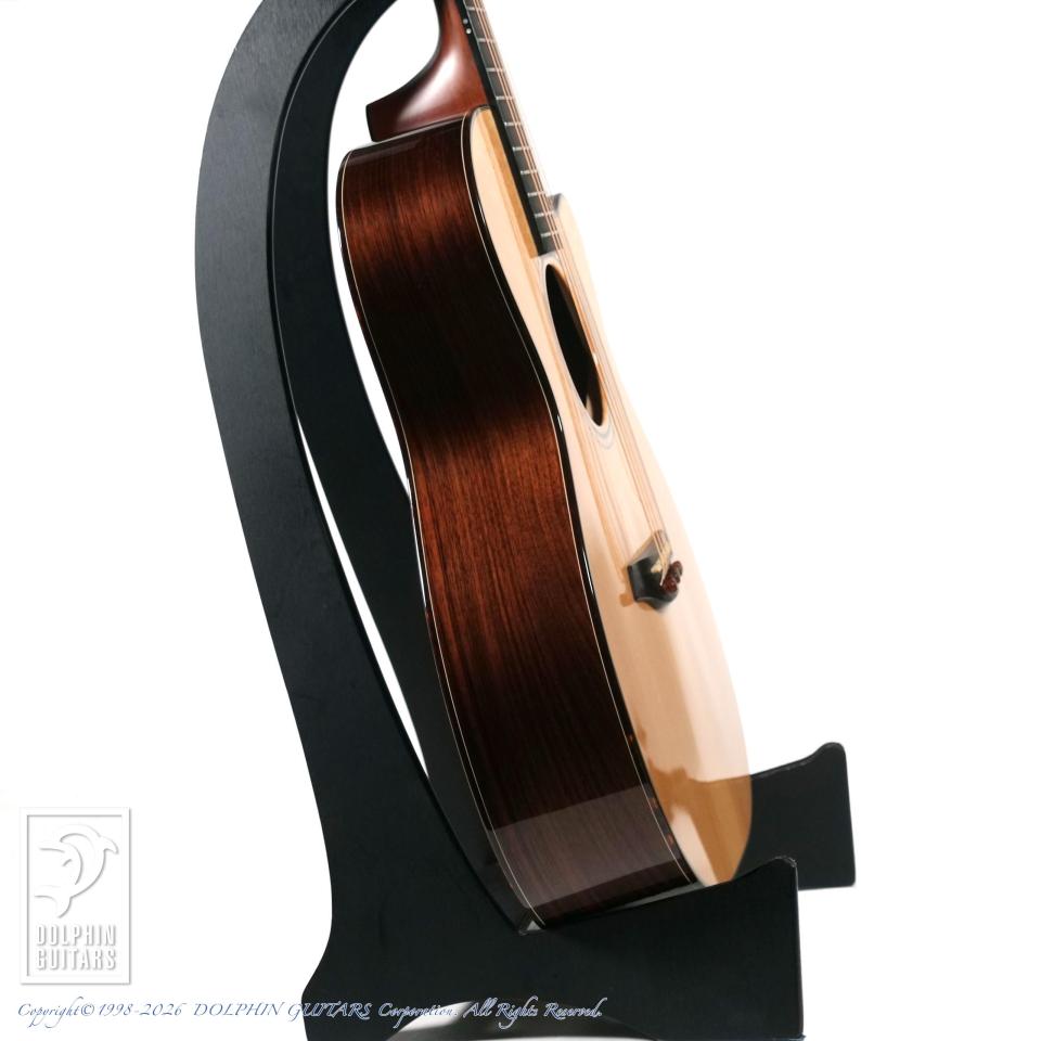 ボディ材の組み合わせはスタンダードなスプルース/ローズですが、トップはイングルマンスプルースのオプションとなっております。イングルマントップの優しさとローズウッドの持つ深みと低音の迫力がマッチし、フィンガースタイルにはまさに打って付けでしょう。
