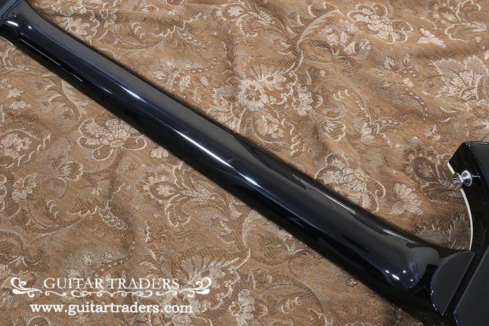 ブラック・カラーのイングレイブ入りのアルミ・ピックガード、ボディ下部にはボーン・インレイが施された、