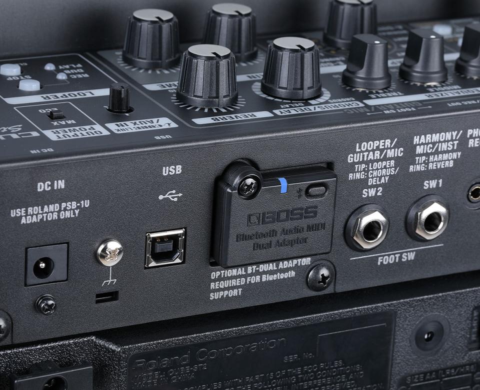 ワイヤレス機能を解放対応製品のBluetooth? Audio MIDI Dual Adaptor (BT-DUAL)は、対応するBOSS製品のBluetoothオーディオ/MIDI機能を拡張するコンパクトなアダプターです。対応製品の専用端子にアダプターを装着するだけで、スマートフォンやタブレットなどのBluetoothデバイスとワイヤレス接続を実現します。楽曲の再生や、Bluetooth MIDIを用いた音色の編集など、モデルによって異なる様々なワイヤレス機能が利用できます。